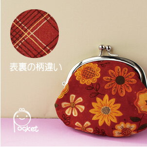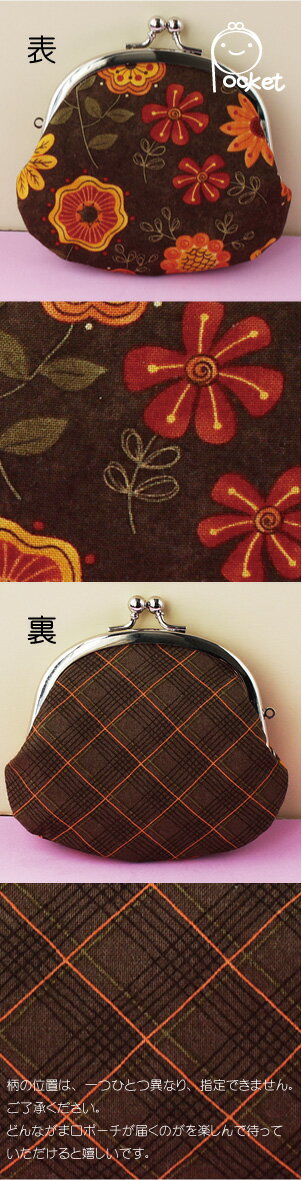 ◆がま口 小物ポーチ / がま口 がま口 小銭入れポーチ / がま口 ポーチ【サンフラワー ブラウン】花柄表裏柄違い
