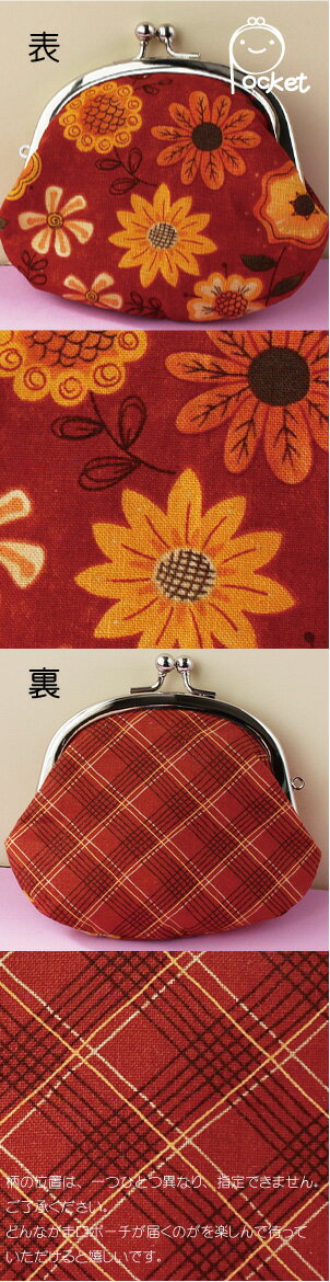 ◆がま口 小物ポーチ / がま口 がま口 小銭入れポーチ / がま口 ポーチ【サンフラワー オレンジ】花柄表裏柄違い