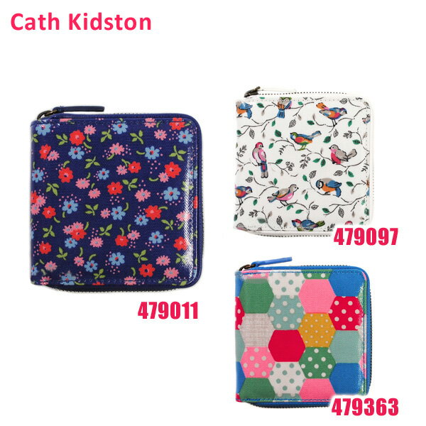 Cath Kidston(キャスキッドソン) 二つ折り財布 小銭入れ付き Square Zip Wallet スクエア ジップ ウォレット 479011 479097 479363 花柄 鳥 パッチワーク ラウンドファスナー レディース